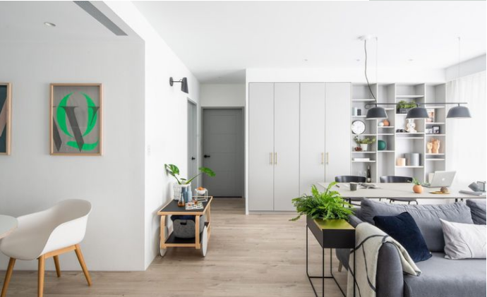 三、除了门、地脚线、窗帘盒、衣柜等之外,尽量不要再有其他木作。且材料及颜色保持一致,这样做就是为了保持和谐统一还能省钱。